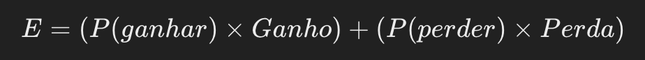 O valor esperado (E) é calculado como a soma dos produtos das probabilidades de cada resultado pelo seu valor correspondente. Matematicamente: