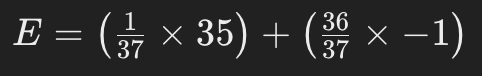 • Probabilidade de ganhar (P(ganhar)): 1/37